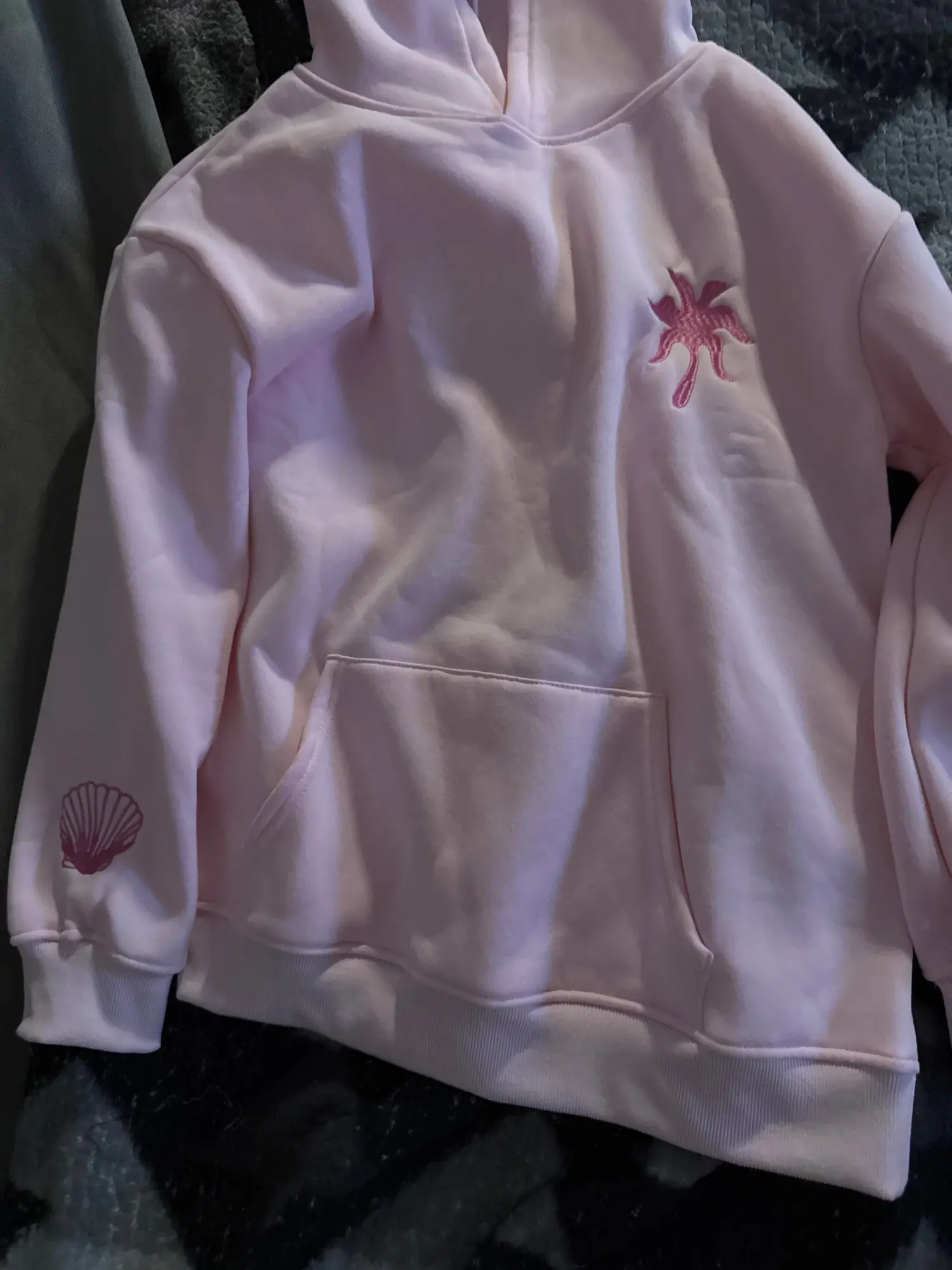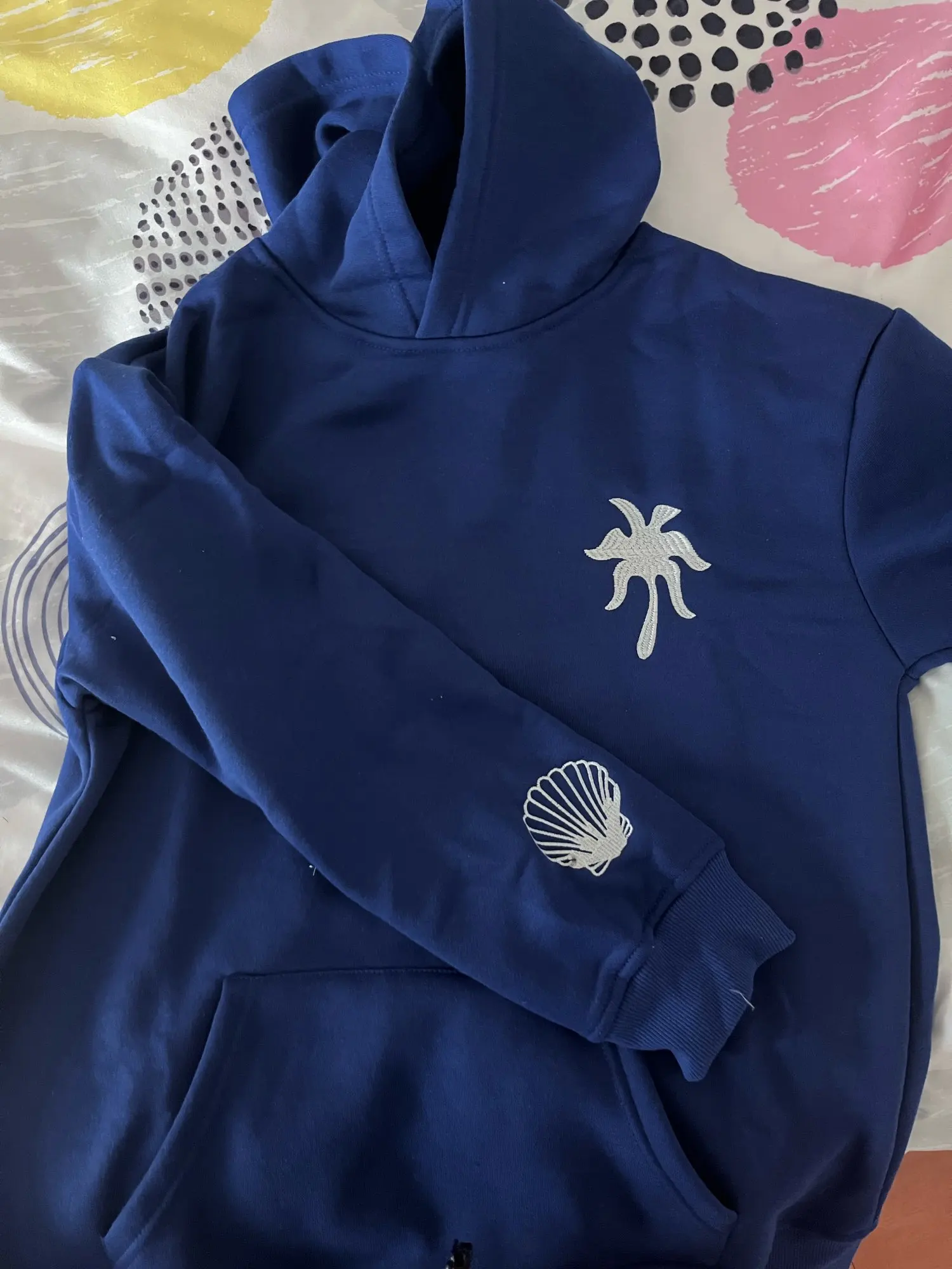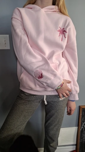 Absolutely beautiful high-quality soft, thick hoodie with amazing embroidered hawaiian hibiscus on the back, detailed embroidered shell on the sleeve, and embroidered palm tree on the chest. My 13 year old daughter has been wanting this hoodie for some time, but i can’t spend the high price that it is sold for elsewhere. My daughter was thrilled with how awesome this hoodie is. She says, “they did an amazing job on the detailed embroidery, and it is so soft and thick, i’m so happy with how it looks, i love it!” She is 5’6″, 95lbs and the size large fits her well with the slightly oversized comfort she likes. We are glad we sized up as another reviewer recommended so that the sleeves are long enough. We are completely satisfied with this purchase and highly recommend purchasing from this a+ seller. Although the shipping cost was high, the total cost was lower than other sellers, and it arrived quickly.