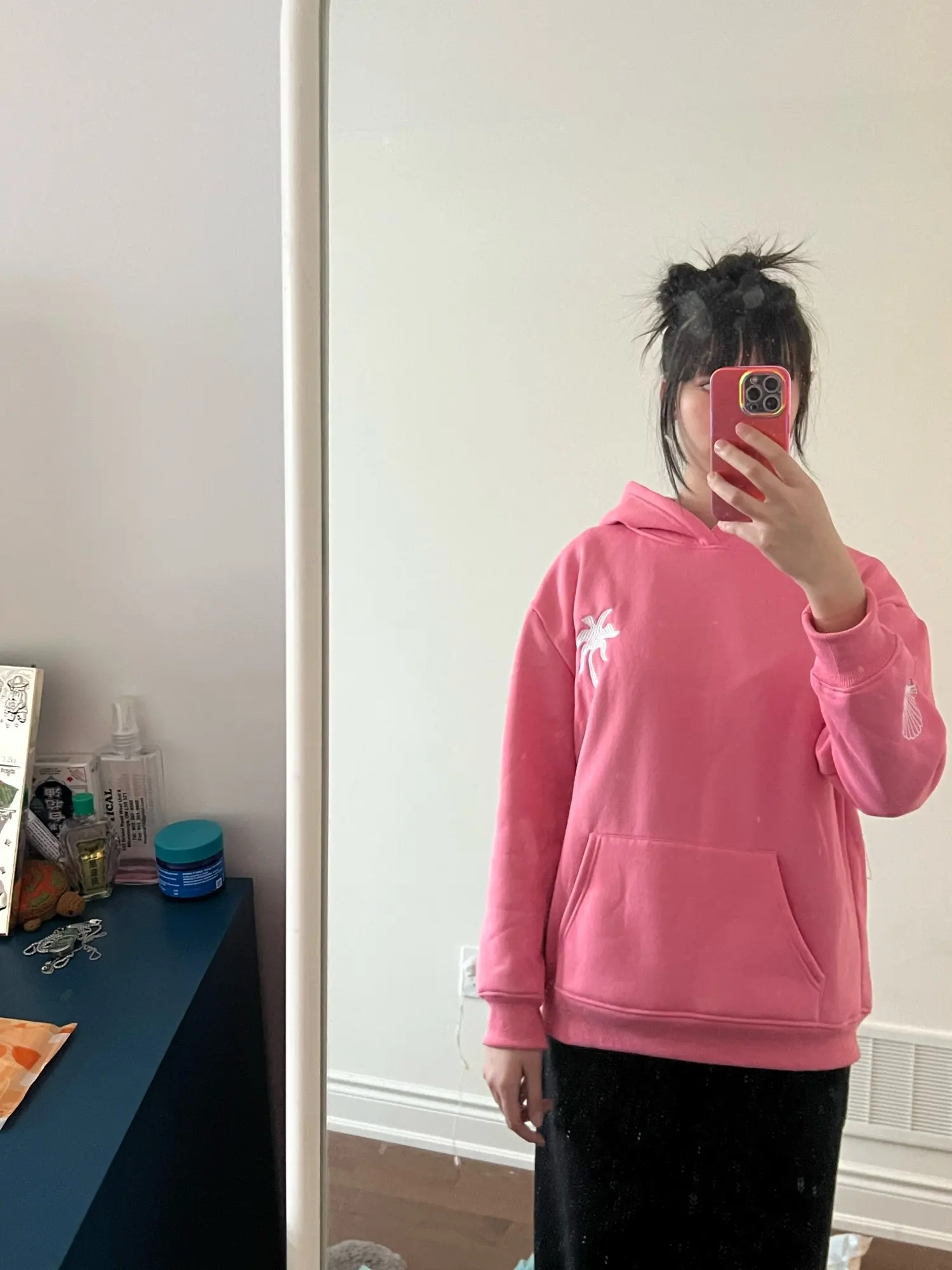 ¡Increíble sudadera con capucha! ¡El bordado es tan impresionante, especialmente en la espalda! Hay un poco de fruncido en el bordado del palmera y el bordado de concha cae hacia el costado del brazo pero no me molesta mucho. Las otras reseñas son las que las mangas son cortas, pero si tengo un xl, entonces la sudadera con capucha habría sido demasiado larga para mi largo, por lo que es ideal. ¡La tela es fina pero no puedes esperar una tela gruesa por un precio tan bueno! En verano será más transpirable si el tejido es más fino siempre. En general, 100% recomendado, ¡comprará más!