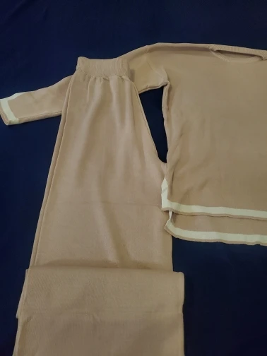 Good quality knitted suit for cold summer or warm autumn/spring. The size is right, the pants are a little short for the height of the 164, without a slip. But the length of the pants is easily adjustable by washing, when wet, you can stretch the length to the desired one.