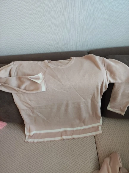 Una maleta bien tejida. Para los parámetros 84-62-92, la costura es perfecta. Sobredimensionado, pero se espera. No corto a una altura de 163 cm. La manga también tiene buena longitud. El material es bonito, pero se encontrará con mucho. No hay etiqueta, por lo que no está claro cómo lavarlo. El color es como en la foto. Entrega rápida. En general, merece su dinero. Yo recomiendo.