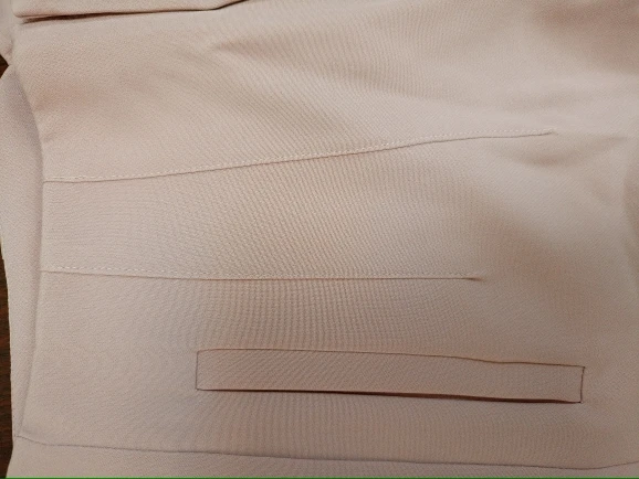 Encontré los pantalones transparentes con el forro de bolsillo mostrando. No pensé que fuera cool.